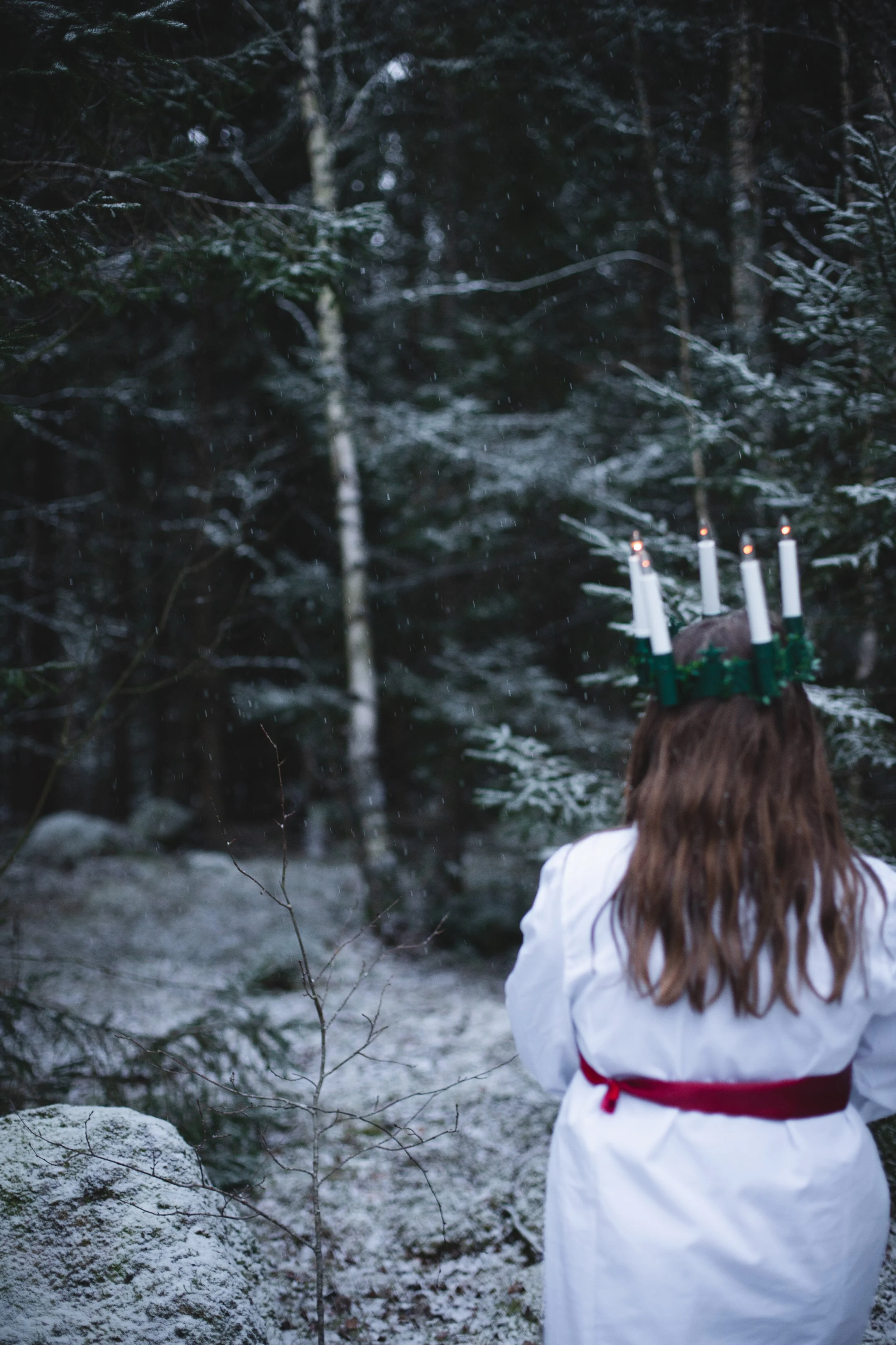 Eine wichtige Tradition ist der „Luciaumzug“, bei dem ein Mädchen mit langem weißem Gewand und einer roten Samtschleife um die Hüfte als Lucia gekleidet ist und eine Kerzenkrone auf dem Kopf trägt. Gleichzeitig begleiten sie andere Kinder, die ebenfalls Kerzen halten. Der Umzug findet gewöhnlich morgens in der Schule oder der Kirche statt und oft erhellt Lucia dann am Nachmittag ebenso das Altenheim mit Licht und Gesang.